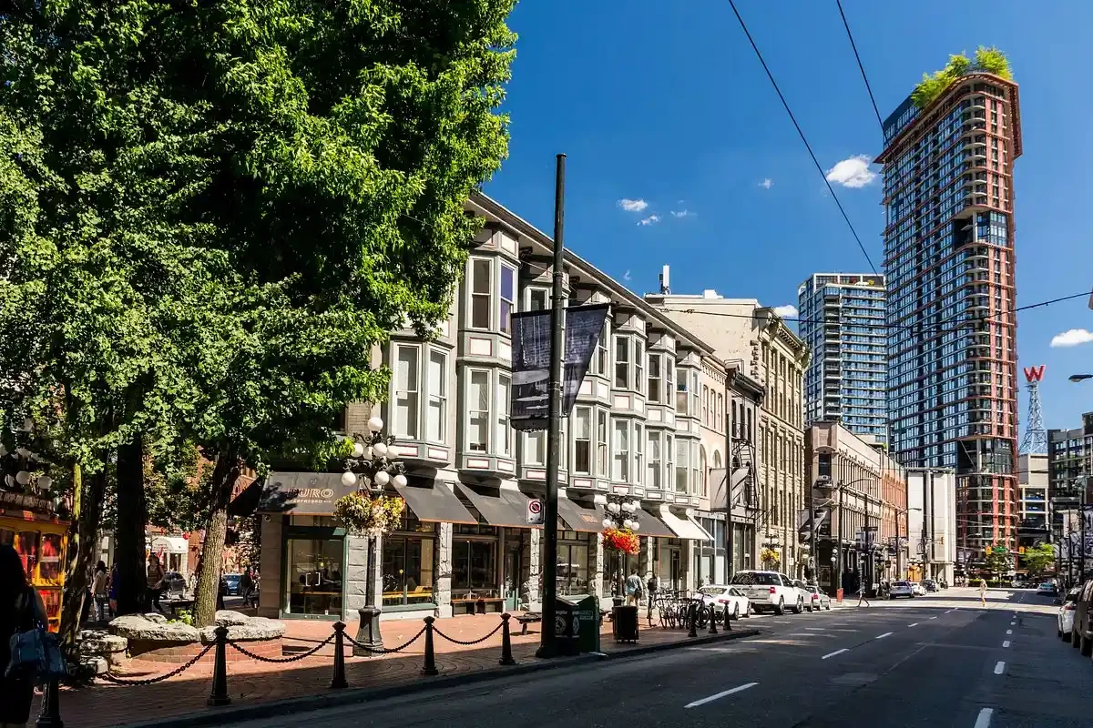 •    Phố cổ Gastown - chiêm ngưỡng chiếc đồng hồ hơi nước độc đáo phát ra âm thanh vui tai kèm theo từng cột khói hơi nước đều đặn mỗi 15 phút một lần. Và nơi đây cũng được ví như là cái nôi khởi nguồn của thành phố Vancouver, khu phố cổ Gastown đã tồn tại từ trước khi thành phố Vancouver được chính thức công nhận vào năm 1886. Hơn 100 năm qua, Gastown vẫn giữ được những nét đẹp cổ xưa và duyên dáng với những con phố lát đá nhỏ hẹp, hai bên là các quán hàng nhỏ xinh được trang trí bằng hoa tươi tuyệt đẹp.